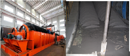 分级机分离原理:螺旋分级机借助固体颗粒的比重不同,因而在液体中沉淀的速度不同的原理,进行机械分级的一种设备。能把磨机内磨出的料粉级于过滤,然后把粗料利用螺旋片旋入磨机进料口,把过滤出的细料从溢流管子排出。是借助于固体粒大小不同,比重不同,因而在液体中的沉降速度不同的原理,细矿粒浮游在水中溢流出,粗矿粒沉于槽底。由螺旋推向上部排出,来进行机械分级的一种分级设备,能把磨机内磨出的料粉级于过滤,然后把粗料利用螺旋片旋片旋入磨机进料口,把过滤出的细料从溢流管子排出。
