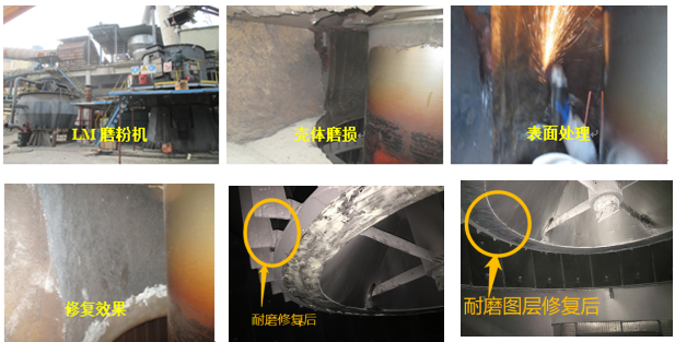 在热电系统中煤磨选粉机使用范围广,磨损速度快,对于煤磨选粉机耐磨修复问题,洛阳融基工贸根据不同生产环境、不同磨损问题均有相对应的解决方案和修复产品,修复步骤近乎相同,具体参照(融基产品中心)